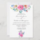 Subtle hot-pink themed roses and peonies floral rehearsal dinner invitations with accents of purple, turquoise, blue and violet.