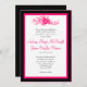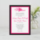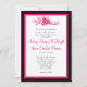 An elegant wedding invitation with the appearance of having three layers, even though they are printed onto one layer. A black outer colour, and hot pink middle border, and the white invitation layer. These "layers" are just printed colours on one invitation. There is a decorative flourish on the top in the same colour as the middle border. The bride and groom's name as also accented in the same colour.
