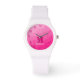 Hot pink geometric mesh pattern Monogram Wrist Watch. Monogrammed Personalized gift watch accessory for her with custom initial and name.