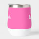 This hot pink wine tumbler is perfect for a girls' weekend! This stylish and durable tumbler can be personalized with white script, making it a perfect accessory for enjoying your favourite wine on the go. It's an ideal choice for a birthday celebration, a bridal party gift, or a thoughtful token of teacher appreciation.