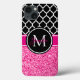 Hot Pink Glitter Black and White Trellis Monogram Case-Mate iPhone Case