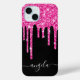 Hot Pink Glitter Drips Black Glam Signature Case-Mate iPhone Case