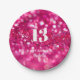 Hot Pink Glitter Glam Personalized 13th Birthday Paper Plate