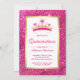 Hot Pink Glitter Tiara Princess Quinceanera Invitation