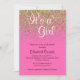 Hot pink and gold glitter sprinkle baby girl shower invitation.