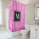A hot pink and white Greek key maze pattern with a black and white single letter monogram.