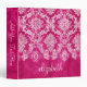 Hot Pink Grunge Damask Pattern Custom Text Binder