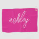 Hot Pink Handwritten Script Monogrammed Golf Towel