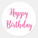 Hot Pink Happy Birthday Simple Minimalist Custom Classic Round Sticker