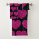 Hot pink heart faux glitter sparkles pattern black bath towel set