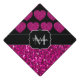 Hot pink heart faux sparkles pattern Monogram Graduation Cap Topper