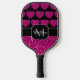 Hot pink heart faux sparkles pattern Monogram Pickleball Paddle