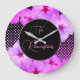 Hot Pink Hibiscus Family Name Keepsake Large Clock