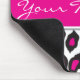 Leopard print mouse pad with hot pink accents and text area. Personalize with your name or text. Makes a great gift!