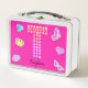 Hot Pink Letter T Monogram Girly Back To School Metal Lunch Box