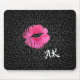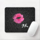 A trendy pink and black mousepad featuring a hot pink lipgloss kiss print against a black leopard print background. Personalize this girly design by adding your monogram initials.