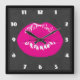 Hot Pink Lips Glamourous Illustration Square Wall Clock