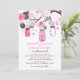 Whimsical invitation featuring hot pink masons jars, flowers and lovebirds. This is part of a wedding suite. Matching items are available in my store.