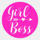 Hot Pink Modern Girl Boss Classic Round Sticker