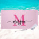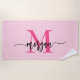 Hot Pink Modern Script Girly Monogram Name Beach Towel