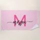Hot Pink Modern Script Girly Monogram Name Beach Towel
