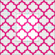 Hot Pink Moroccan ogee trellis pattern on white fabric (Small pattern version, use the "Customize It" tab to easily change the scale and direction of the pattern to suit your project). This versatile quatrefoil pattern fabric is available as machine washable 56" wide combed cotton, 54" wide pima cotton, 58" wide cotton twill, 60" wide polyester poplin, 58" wide woven polyester or linen which has a width of 54 inches and is dry clean only. Available as swatches, fat quarters, or by the yard. Printed in the U.S.A. A choice of perfect cloth fabrics in modern colours for home decor, upholstery, quilting, crafts, apparel, applique or other textile DIY projects.