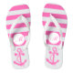 Hot Pink Nautical Anchor with Stripes and Monogram Flip Flops