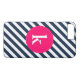 Customizable electronics case featuring navy and white diagonal stripes. Other colours are available.