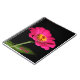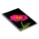 Hot pink zinnia flower spiral notebook. Black, hot pink, green, mustard gold, and green. Designer garden image.
