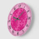 hot pink on pink chic damask roman numerals large clock