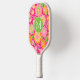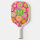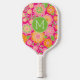 Hot Pink Orange Green Flowers with Custom Monogram Pickleball Paddle