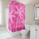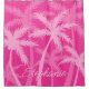 This modern trendy shower curtain features a tropical palm tree design in hot pink, magenta and fuchsia shades of pink. Personalize the script typography with your name or monogram.
