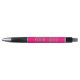 Personalize our pen with your business logo, tagline, website, business address, or other custom text. It's a ballpoint pen with black ink and a rubber grip. Designed in hot pink and other colours (all colours are customizable). Made in USA. Small quantity order (six minimum) and no setup fee.