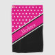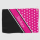 Hot Pink Polka Dot Black Diagonal Script Name Golf Towel