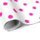 A wrapping paper built with a hot pink polka dot pattern with a large distance between the dots on a white background. Customize the white background in an easy way.
