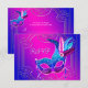 Beautiful royal blue hot pink masquerade party RSVP with pretty teal blue purple hot pink and royal blue feather mask on a gorgeous purple and hot pink background. This elegant hot pink purple masquerade party RSVP is easily customized for your event by simply adding your event details, font style, font size & colour, and wording. This is a printed design with no real glitter, feathers, jewels, etc.