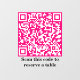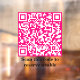 Customizable QR Code window cling, with a hot pink background. To generate a new QR code on the design, add your website URL or booking webpage in the " personalize this template" feature.