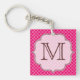 Hot Pink Quarterfoil Lattice Quarter Foil Personalized Custom Fabric pattern Monogram Initial Key Chain