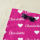 Hot Pink Personalized Name Pattern Beach Towel with Heart Design Summer Beach Bath Towel.