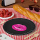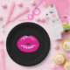 Hot Pink Shiny Lips on Black Paper Plate