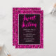 Hot pink sparkles glitter Sweet 16 elegant script Invitation