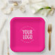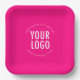 Promote your brand with durable square paper plates printed with your company logo. You can easily personalize these hot pink plates online to match any event or promotion. All colors are customizable. FDA-compliant, these plates are printed in the USA and sold in small order quantities. The size options are 9 x 9 inches and 7 x 7 inches. No setup fee.