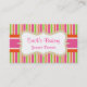 Bright stripes of lime, pink and orange decorate this fun business card. Customize the card to suit your needs, add or delete information etc...Use these business cards for a business, bakery, child care, daycare, preschool, salon, spa, fashion, stylist, hair stylist, daycare, preschool, florist, interior design, bed and breakfast, candy shop, ice cream shop, restaurant, gourmet chocolates, cheesecake, boutique, shop, coffee shop, etc...