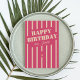 Hot pink striped happy birthday greeting card