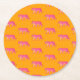Hot Pink Tiger on Bold Orange Boho Pattern Round Paper Coaster