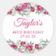 Hot Pink Watercolor Peonies 40th Birthday Classic Round Sticker