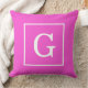 Hot Pink White Framed Initial Monogram Throw Pillow