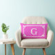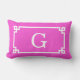 Hot Pink White Greek Key Frame #2 Initial Monogram Lumbar Pillow