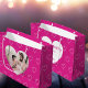 Front: A hot pink background decorated with hearts. Personalize and add a photo: