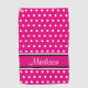 Hot Pink White Polka Dot Black Stripes Script Name Golf Towel